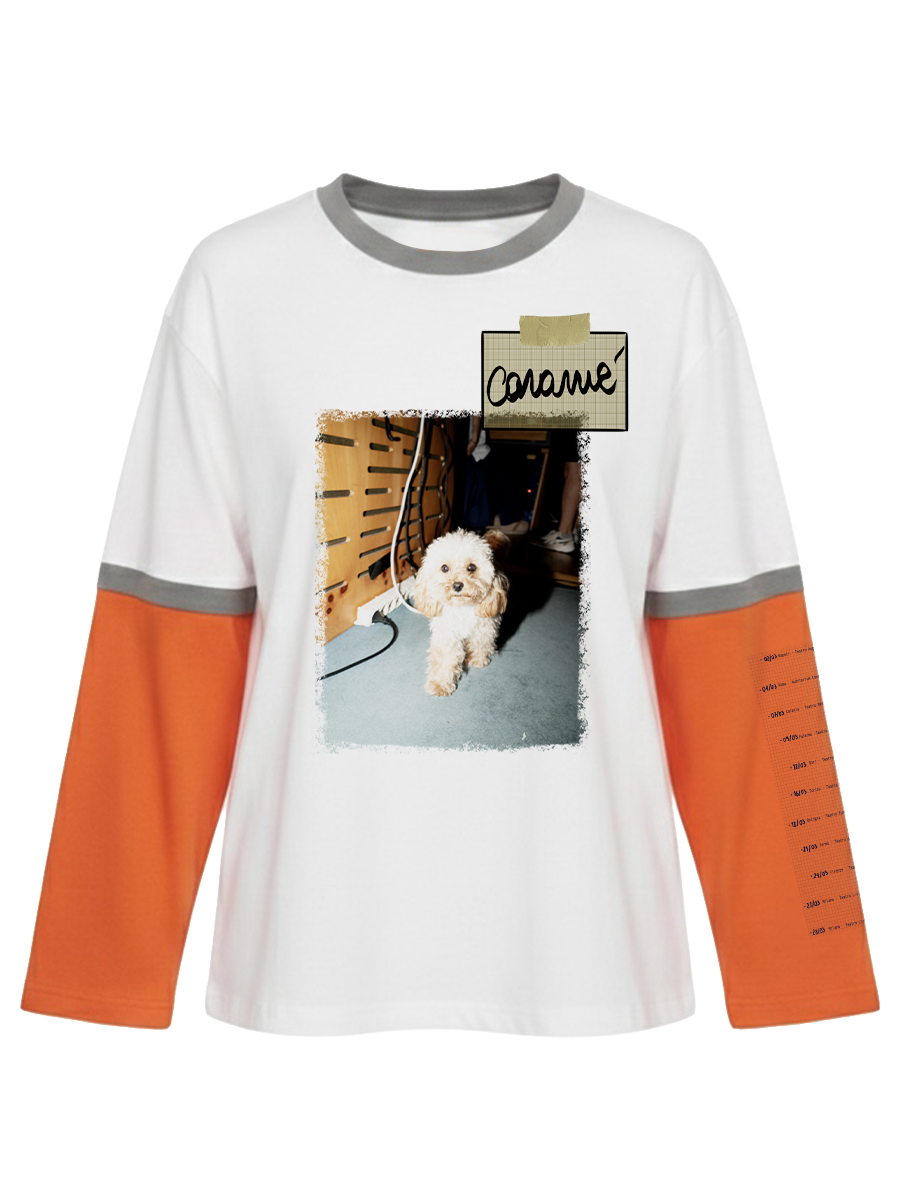 T-shirt doppia manica bianca/arancio