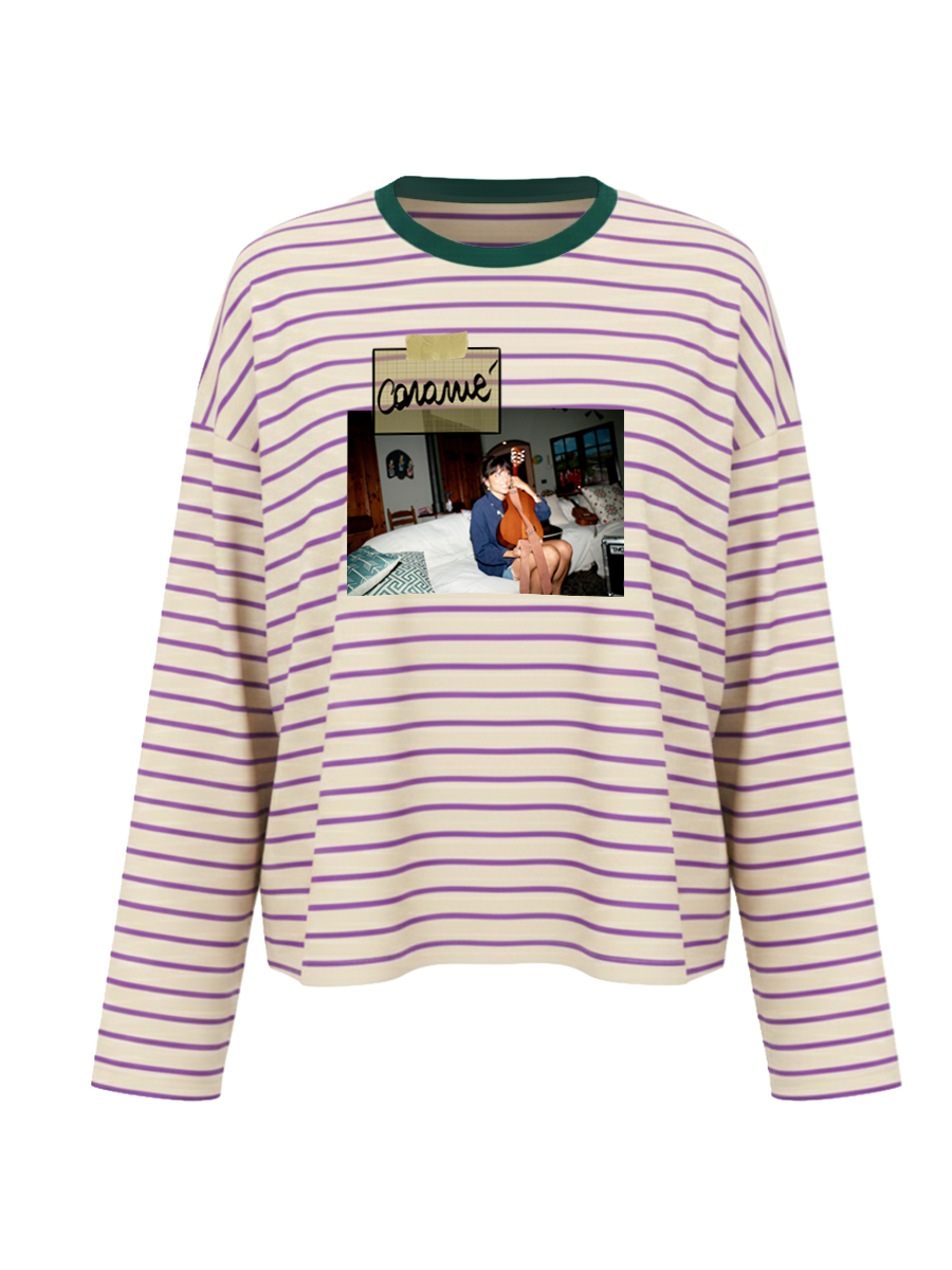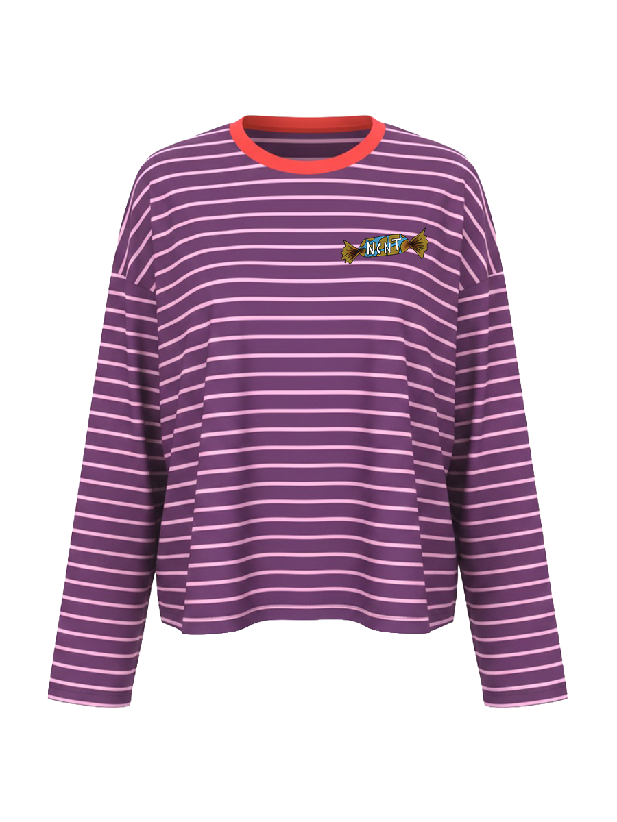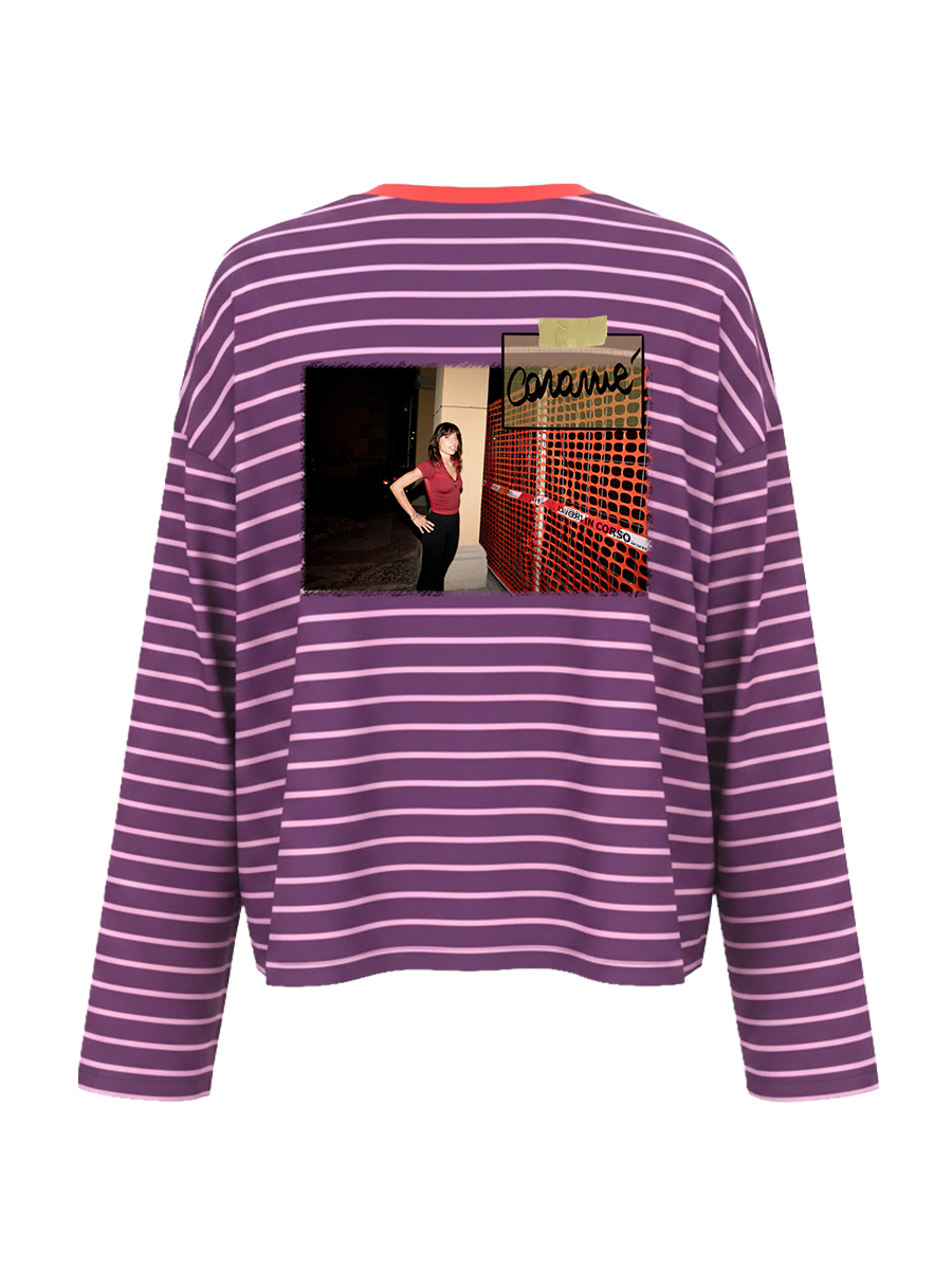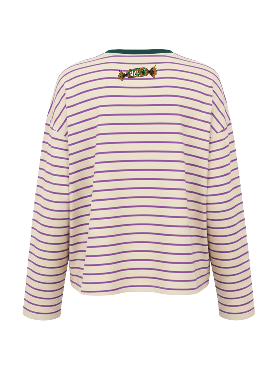Maglia a righe caramè viola